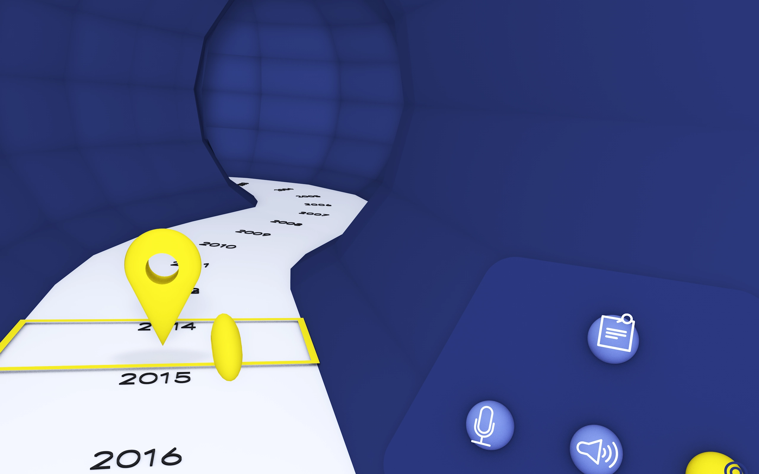 The VR prototype is designed to improve kinesthetic and visual learning through the use of spatial design and interface. The timeline is not linear, but features gentle curves and varying distances, creating a dynamic environment that activates the user's spatial perception. Textural and chromatic coding further supports learning by distinguishing conflicting and non-conflicting events, making the information easier to process and remember.