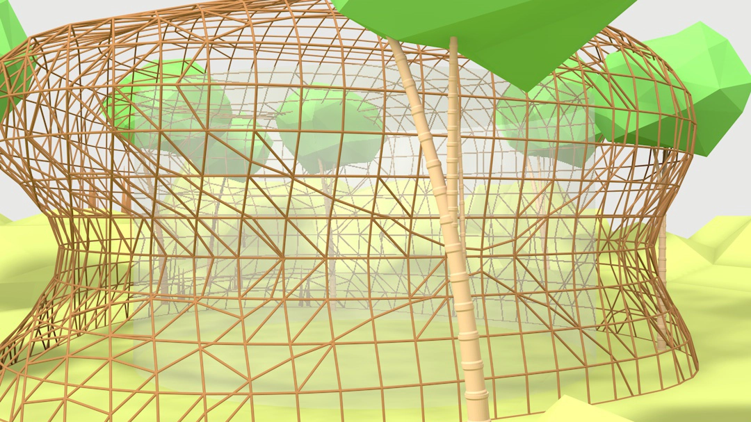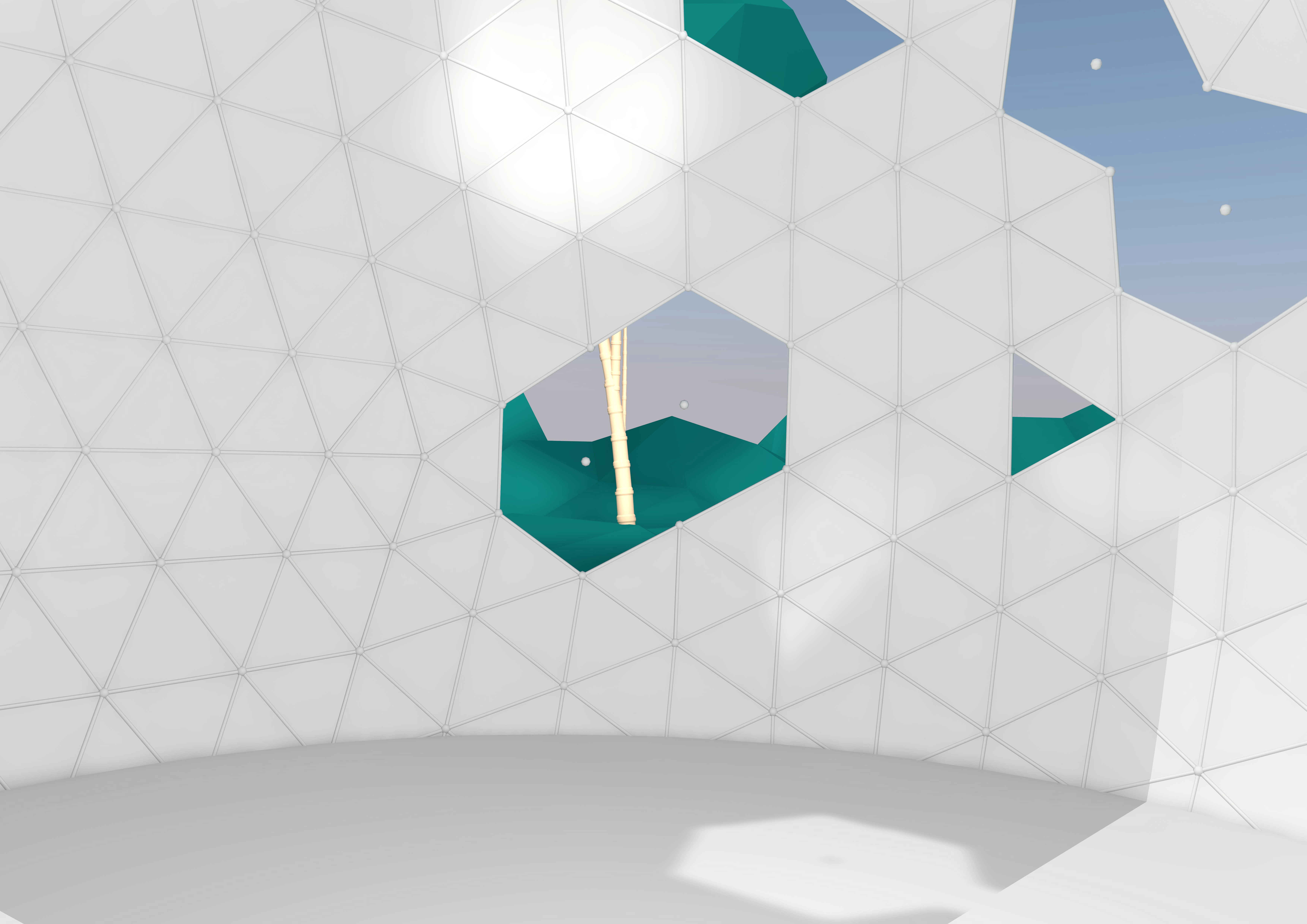 An organic, fully transparent structure surrounded by a vibrant and colorful landscape. Design Goal: To assess how dynamic and visually rich environments impact excitement and engagement.
